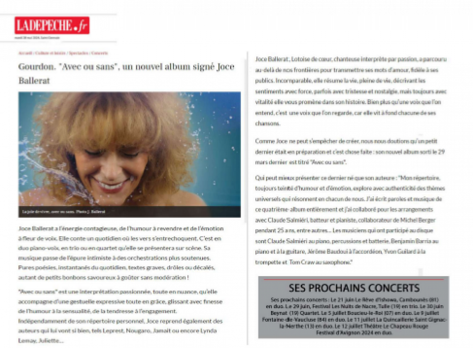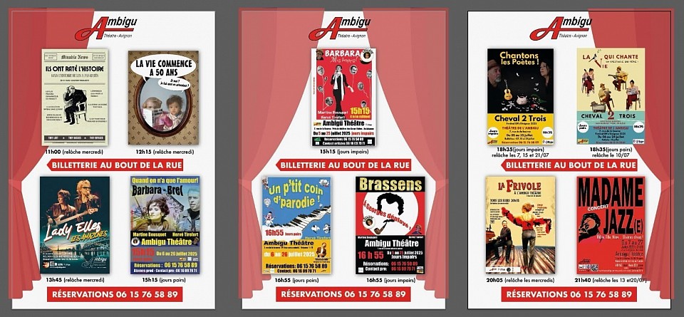 Barbara mes hommes, à Georges déployé, Un pt'i coin d'parodie, Quand on n'a que l'amour: https://www.avignon-et-moi.fr/articles/3315-martine-bousquet-et-herve-tirefort-barbara-et-brassens-sont-des-revolutionnaires-de-la-chanson.html